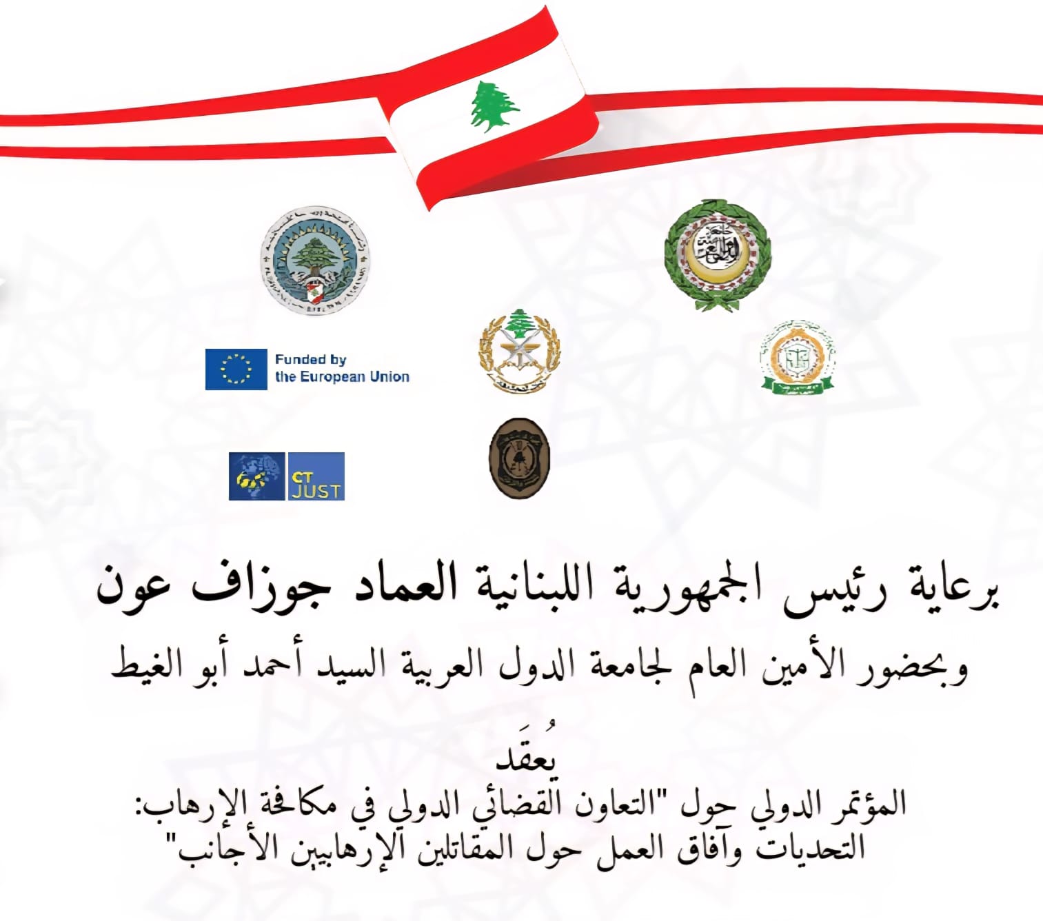 برعاية وحضور رئيس الجمهورية اللبنانية والأمين العام لجامعة الدول العربية، ينعقد المؤتمر الإقليمي حول التعاون القضائي الدولي في مكافحة الإرهاب