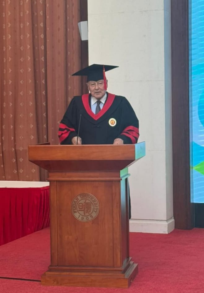 ​كلمة ترحيبية لمعالي السيد أحمد أبو الغيط الأمين العام لجامعة الدول العربية في مراسم منح الدكتوراة الفخرية من جامعة فودان الصينية