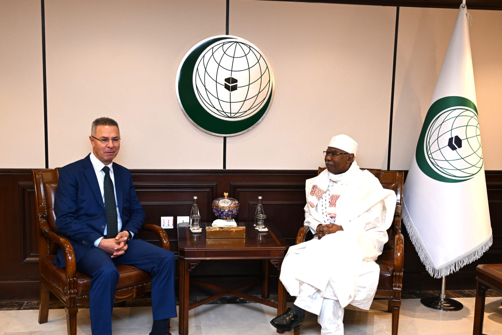 The Secretary-General of the Organisation of Islamic Cooperation, His Excellency Mr. Hussein Ibrahim Taha, received His Excellency Ambassador Dr. Faed Mustafa, Assistant Secretary-General and Director of the Palestine and Occupied Arab Territories Sector at the League of Arab States, and His Excellency Ambassador Ali Darwish, head of the Permanent Delegation of the African Union to the League of Arab States, on 16 December on the sidelines of their participation in the consultative meeting hosted by the Organisation of Islamic Cooperation General Secretariat. The meeting was held within the framework of the joint coordination mechanism among the three organisations to support the Palestinian cause.